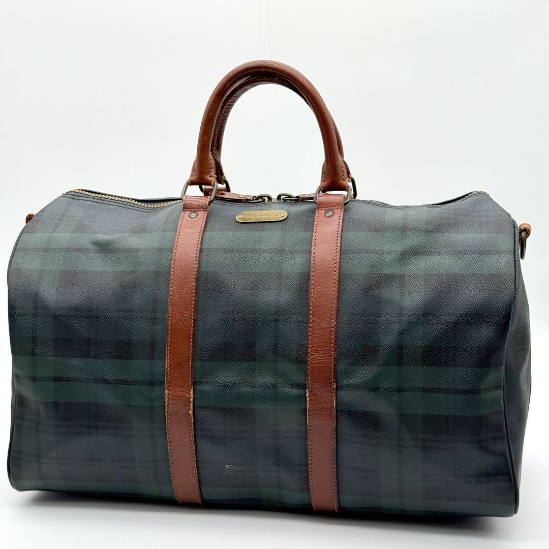 > 【良品】Polo RalphLauren ポロラルフローレン タータンチェック ボストンバッグ トラベル ヴィンテージ レディース グリーン CJ000514