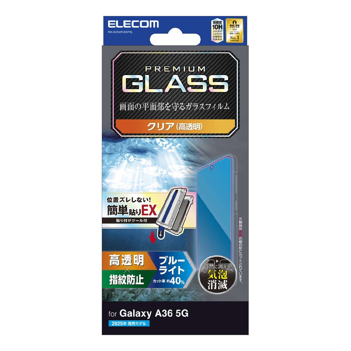 > Galaxy A36 5G用画面保護ガラスフィルム 簡単貼付ツール付属 なめらかな指滑りを実現するブルーライトカットタイプ: PM-G254FLGGTBL
