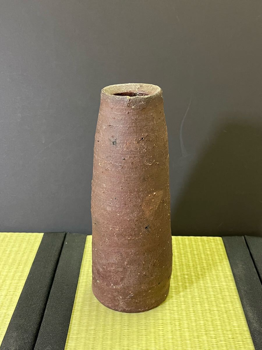 - 備前 森陶岳 石はぜ ガラス釉 花入 一輪挿し 花瓶 花器 花生 茶道具 備前焼 置物 時代物