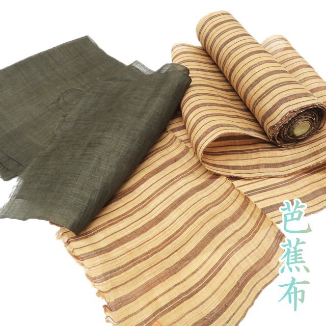 - 特選 はぎれ 夏物 芭蕉布 反物 リメイク 素材 海松茶色 茶系色 多色 きもの北條 A1218-3