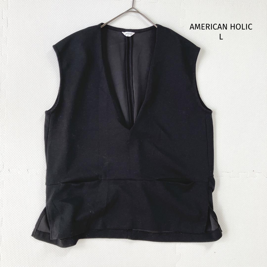 - AMERICAN HOLIC カットソー【L】フレンチスリーブ Vネック 黒