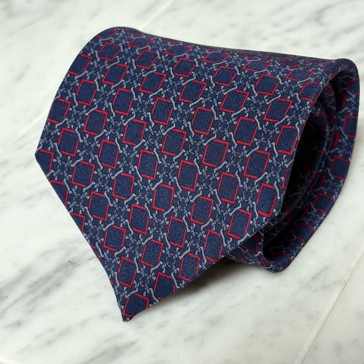 - 【美品】 999円~ MARIO VALENTINO ネクタイ ネイビー 幾何学模様 (B4)
