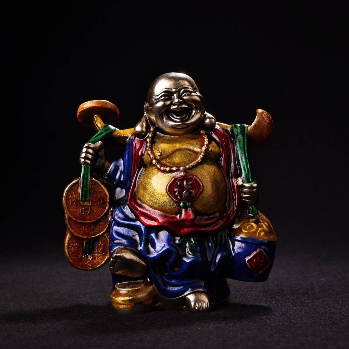 - 蔵友旧蔵出 銅製 景泰藍 琺瑯彩 彩繪 壽桃財神像 希少珍品 貴重品 置物 古賞物 密宗密教 供養品 仏教美術品