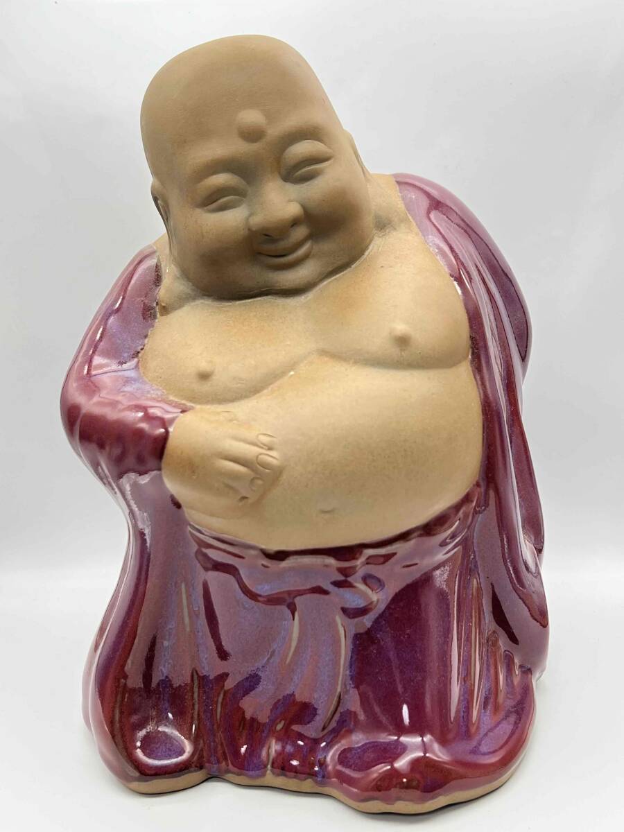 - 清代 鈞窯 紫紅釉弥勒菩薩 窯変釉 辰砂 唐物 古賞物 時代物 骨董品 仏像 仏教用具 中国古美術(B-31)