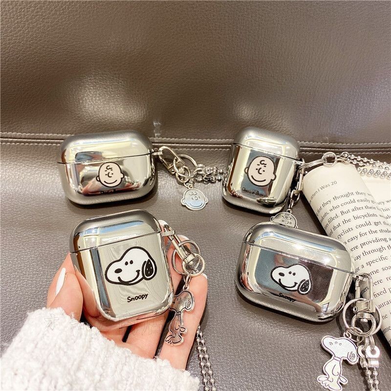 - AirPods Pro 第2世代用 スヌーピー カバー ストラップ付属 シルバーカラー 全面保護 滑り防止 軽量設計 日常使いに最適