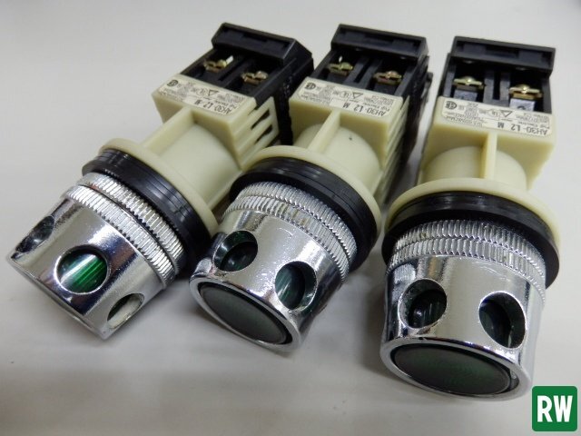 - 【3個セット】 照光 押しボタンスイッチ 緑色 白熱球 φ30mm 富士電機 AH30-L2M 穴付フルガード形 48×42×110mm 180g 接点構成1a [2]