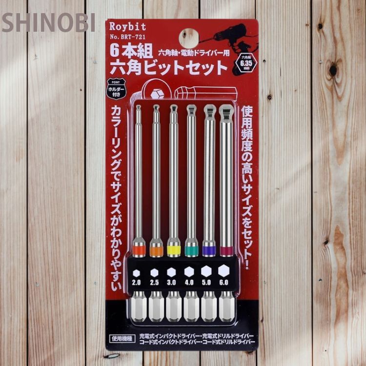 - ボールポイント 六角ビットセット 6本組 100mm 片頭 6.35mm六角軸 磁気ドライバービット 対辺2/2.5/3/4/5/6 電動ドライバー用