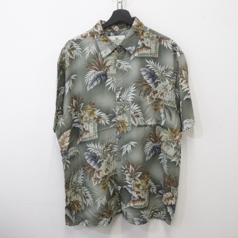 > J686 2000年代製 JslaudShares 半袖アロハシャツ■00s 表記Lサイズ グリーン レーヨン ボタニカル アメカジ ストリート 古着 古着卸 激安