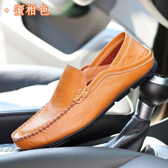 - 「特典あり」ドライビングシューズ メンズ デッキシューズ 本革 牛革 レザーシューズ ビジネス カジュアルシューズ Zms0105 蜜柑色 27.0cm