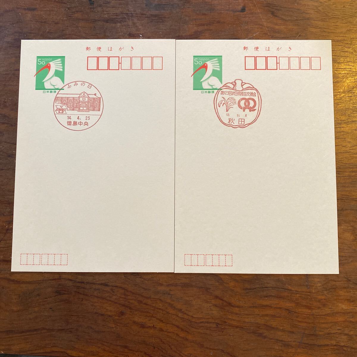 - [猫] トキはがき 初日風景印 二枚 秋田他