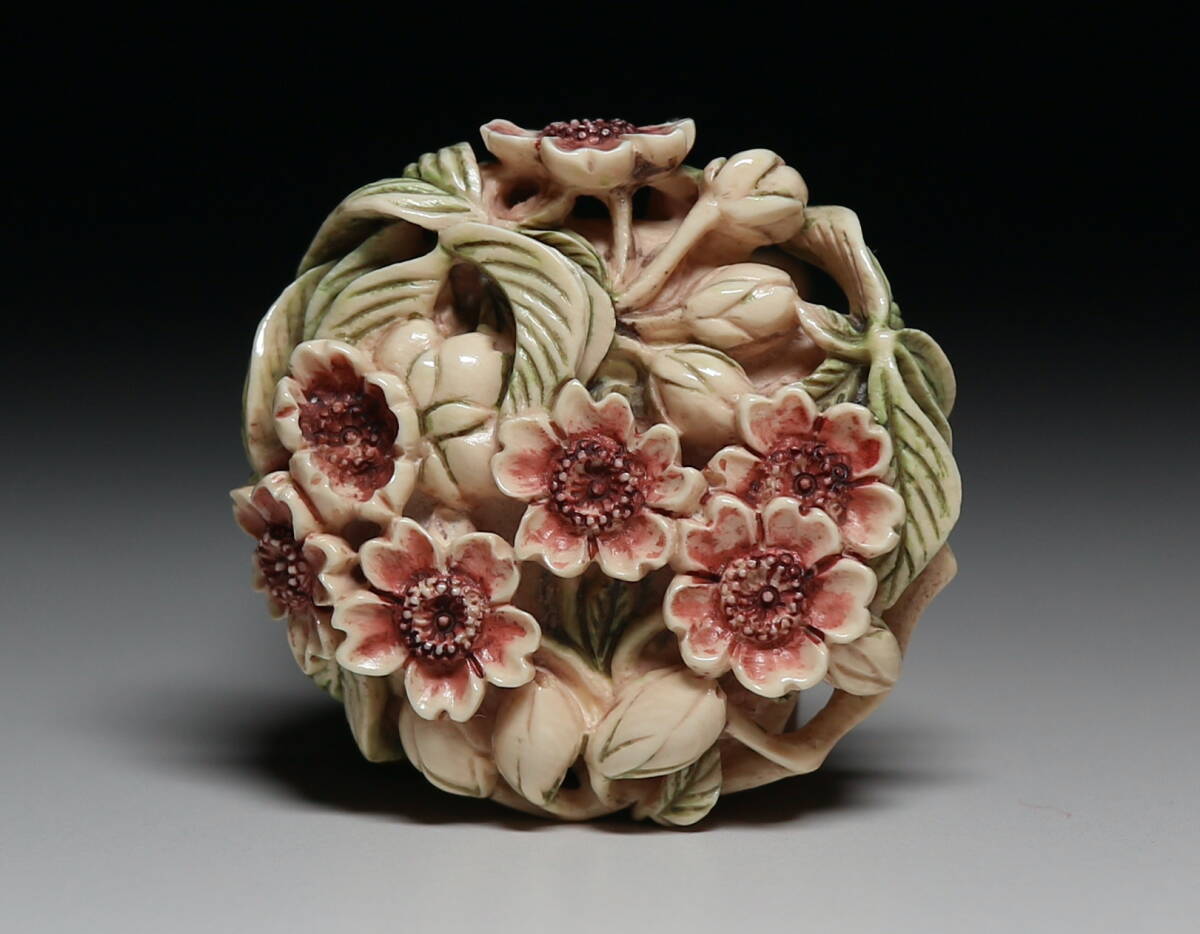 - 【心】k454 根付 桜(柳左根付) 透かし彫り!