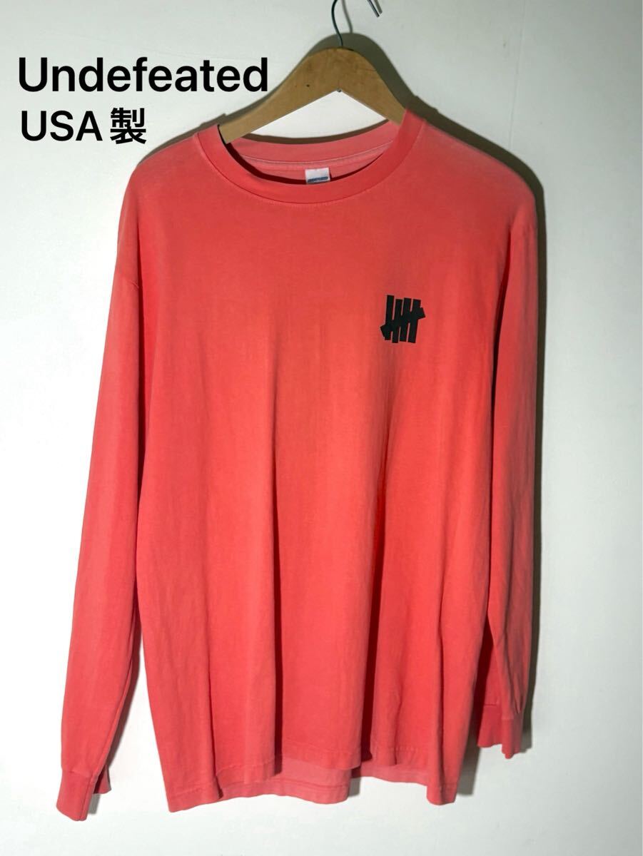 - USA製 Undefeated アンディフィーテッド 長袖 ロンT ロゴ バック プリント サーモン ピンク ネオン カラー アメリカ スニーカー M