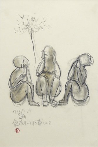 - 【真作】横手由男 デッサン 「三猿三尊」 雨情縁(うじょうゆかり)「雨さん」の通称で知られた放浪画家。【信頼と実績の正光画廊】