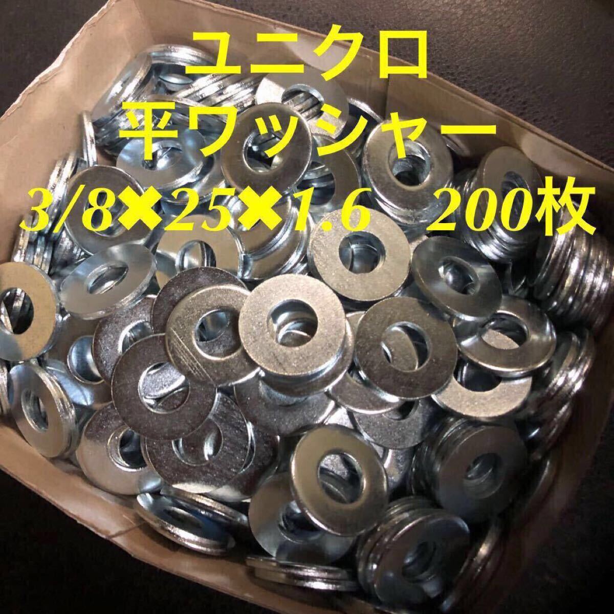 > ★送料込★ユニクロ 鉄 平ワッシャー 3/8 200枚 ユニクロメッキ 丸ワッシャー (3/8×25×1.6)