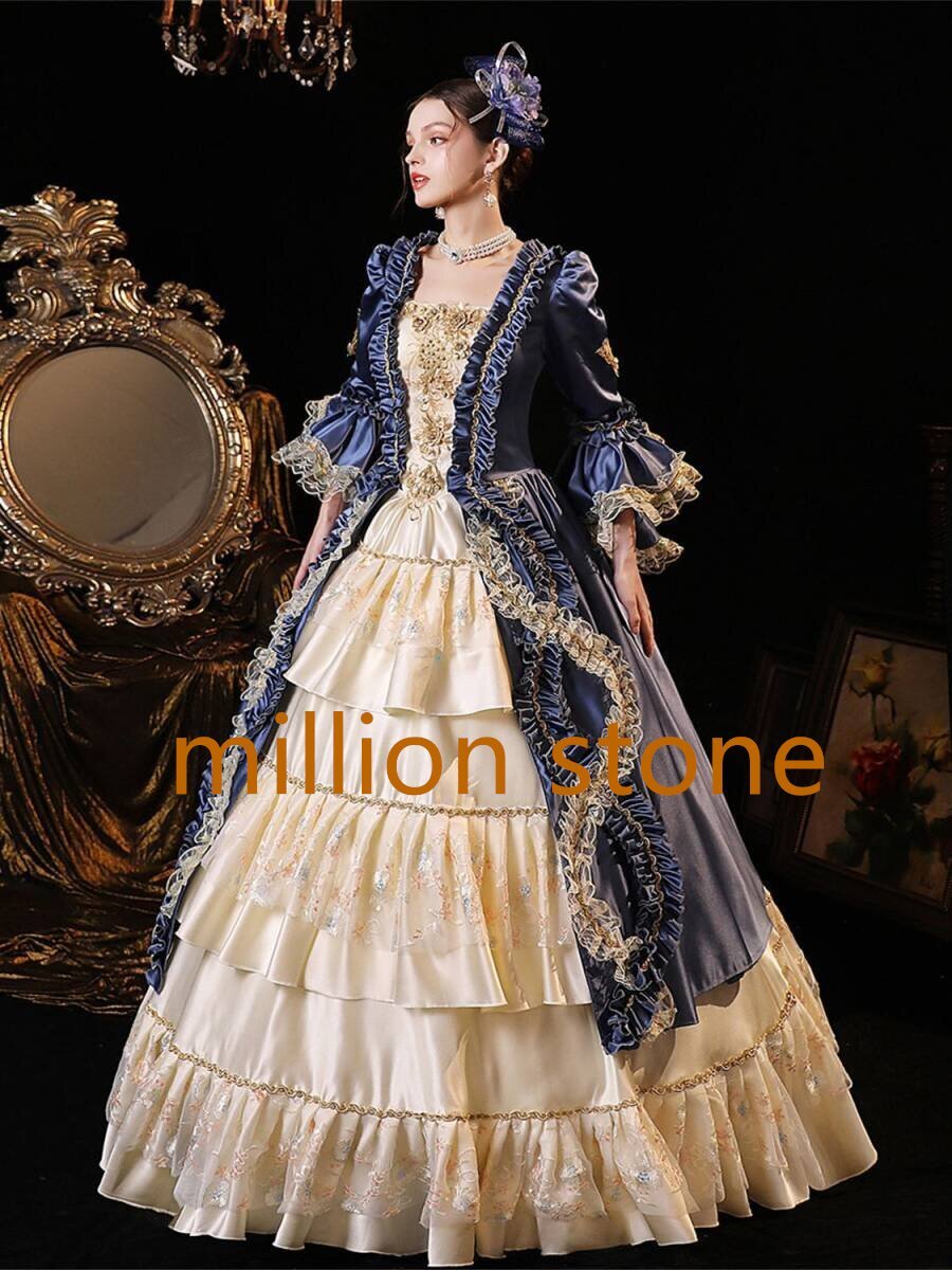 - 人気品storeljサイズオーダー無料 濃いブルー宮廷 王室 コスプレ衣装 皇室 王女パーティードレス パニエ ヘッドドレス(帽子)付属 前撮