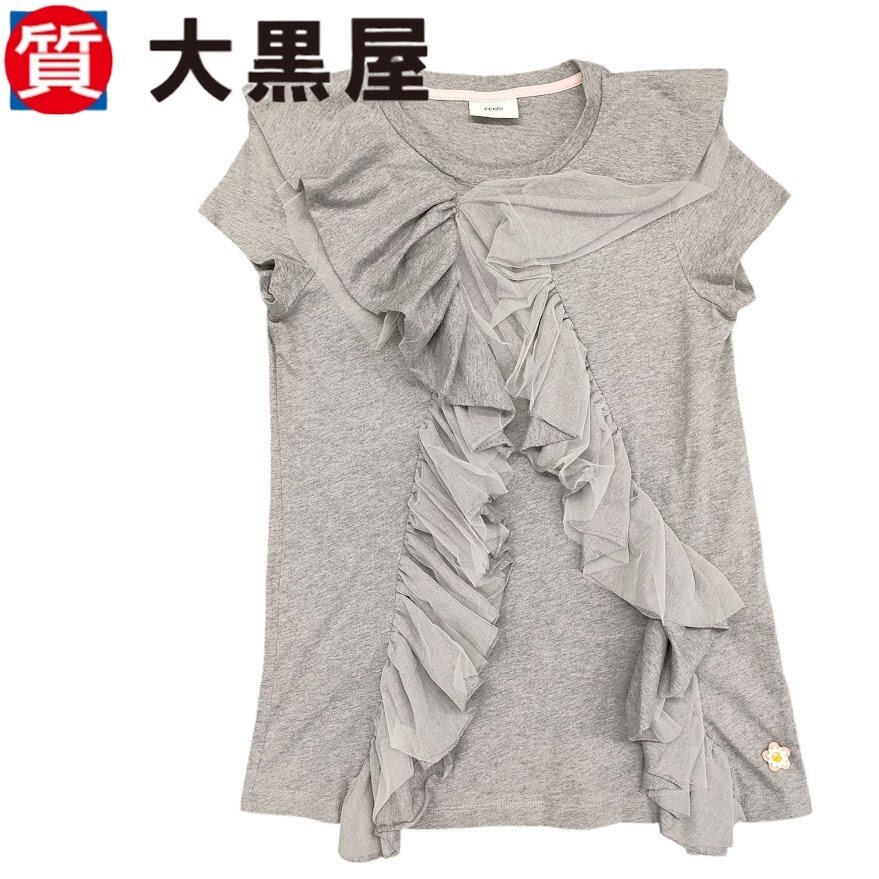 > 【大黒屋82】FENDI フェンディ フリル 半袖 ワンピース 子供服 キッズ サイズ12+ コットン グレー お花 チュール Tシャツ 返品交換不可
