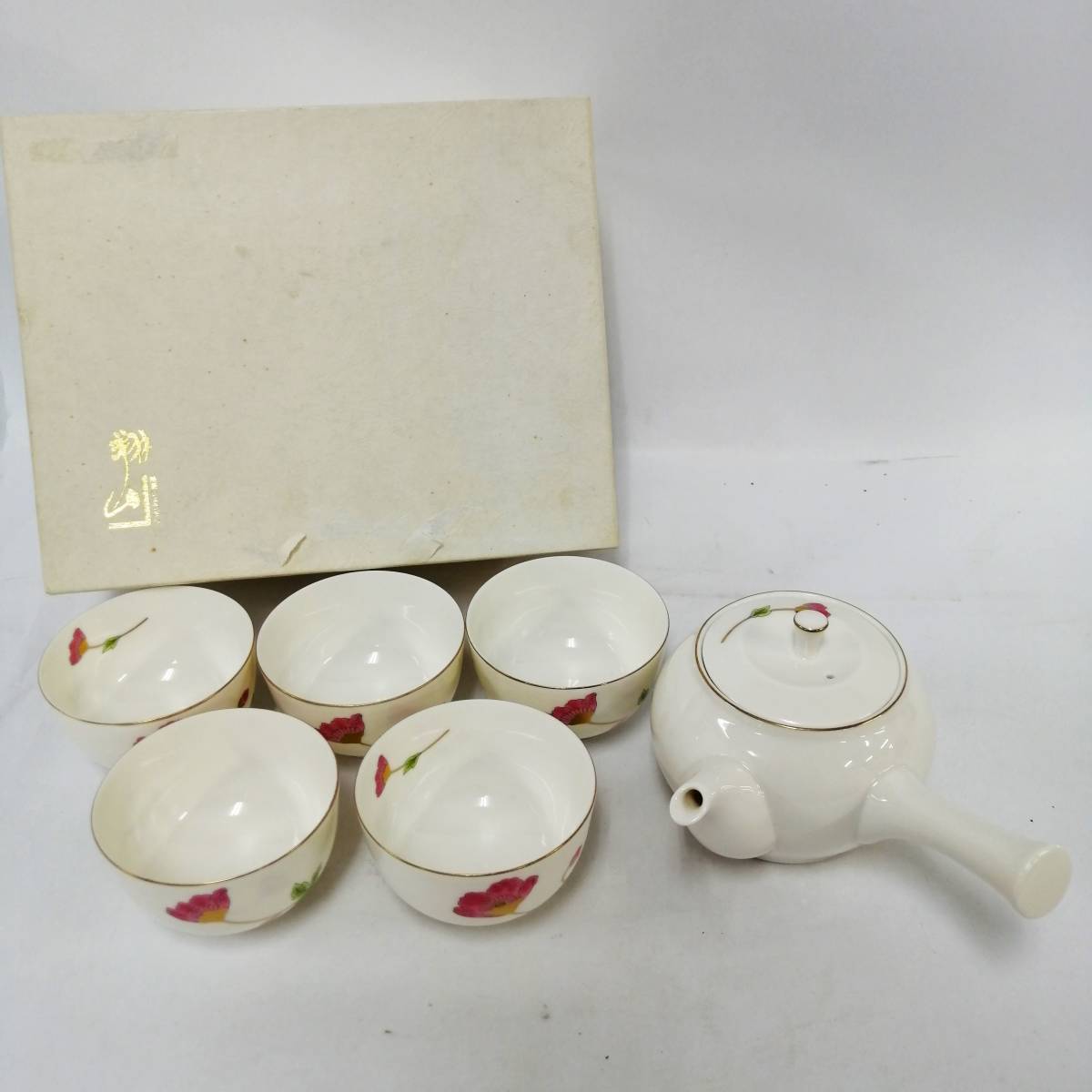 - 未使用 湯呑 急須セット 湯呑5客セット 和柄 花柄 レトロ【アウトレット品】 22 00546