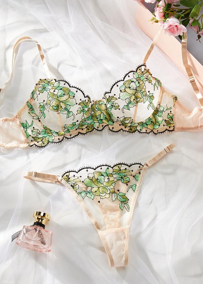 > 278 ブラジャーセットladiesレディース ◇ 魅惑Styleセクシー ◇ 上質 ショーツセット 刺繍 グリーン