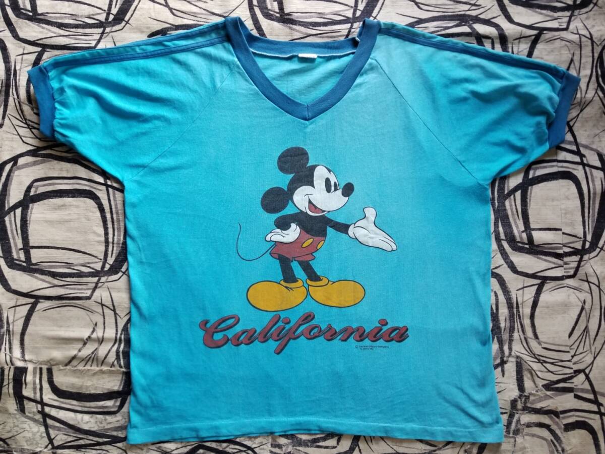 > USA製 SHERRY レア エラーステッチ ダメージ 80s 90s 当時物 ビンテージ オリジナル 3本ライン ミッキー Vネック プリント リンガーTシャツ