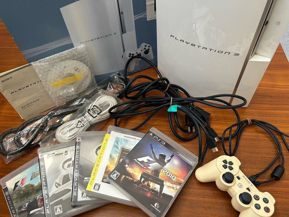 > ◆初期化済◆SONY PS3 PlayStation3 ホワイトCECHH00 40G ソフト5本付き GRAN TURISMO5/真・三国無双5/F1 2010/F1 CHAMPIONSHIP EDITION