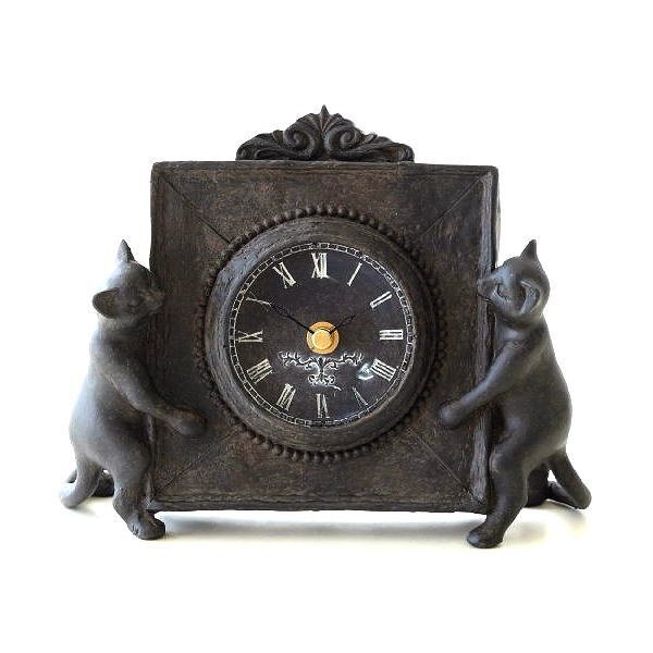 - 置き時計 置時計 おしゃれ レトロ かわいい 猫 ねこ 雑貨 アンティークな時計とネコさん 送料無料(一部地域除く) swa4682