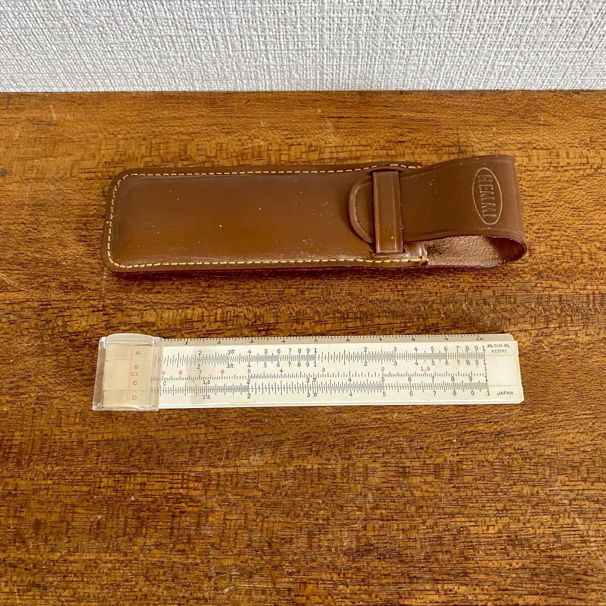 - ヴィンテージ HEMMI SUN 計算尺 携帯用 / スライドスケール ヘンミ 小型 革ケース付き no.30 当時物 昭和レトロ