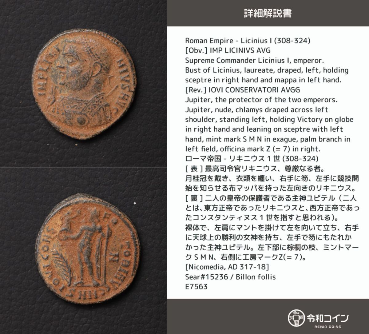 - *[令]リキニウス1世 フォリス・ビロン貨 古代ローマコイン【詳細解説カード付】ギリシャ、銀貨[E7563]7l6