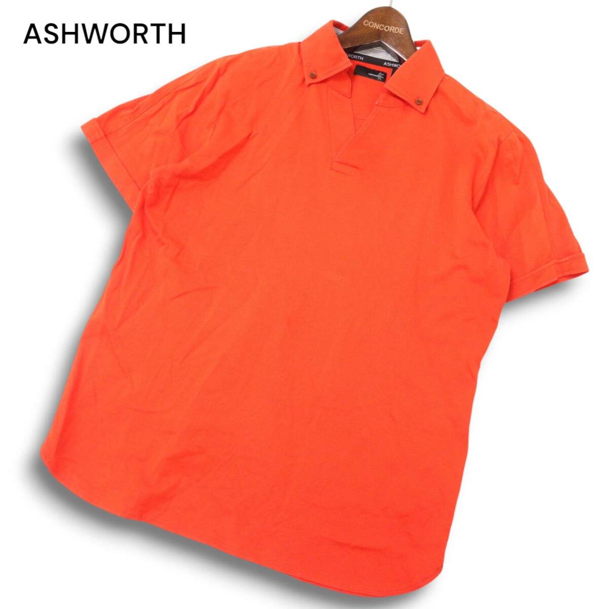 - ASHWORTH アシュワース ゴルフ 春夏 ボタンダウン★ 半袖 スキッパー ポロシャツ Sz.L メンズ オレンジ 日本製