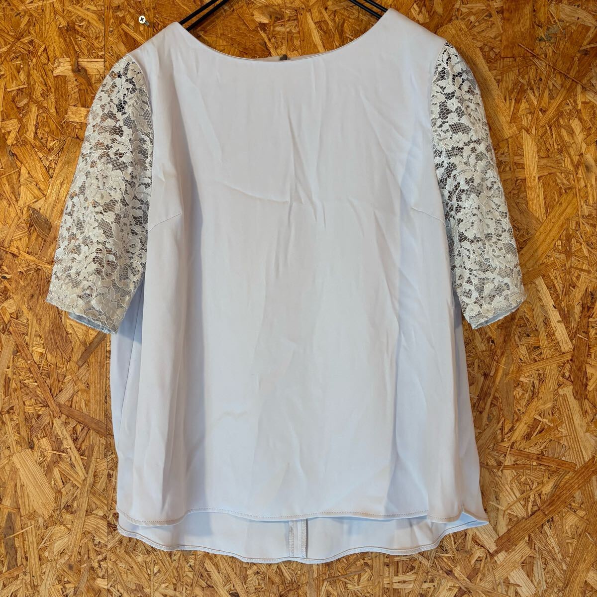 - 美品 INDIVI 日本製 サラサラ生地 半袖 袖レー カットソー 綺麗め グレージュ レディース トップス 4582