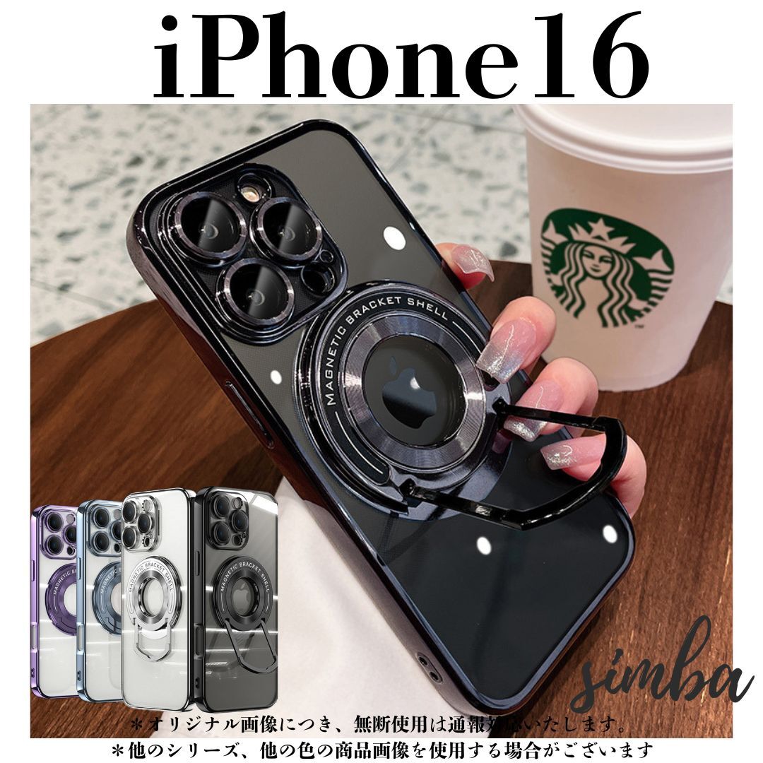 > iPhone 16 ケース MagSafe対応 透明 スタンド付 カメラ保護 ブラック