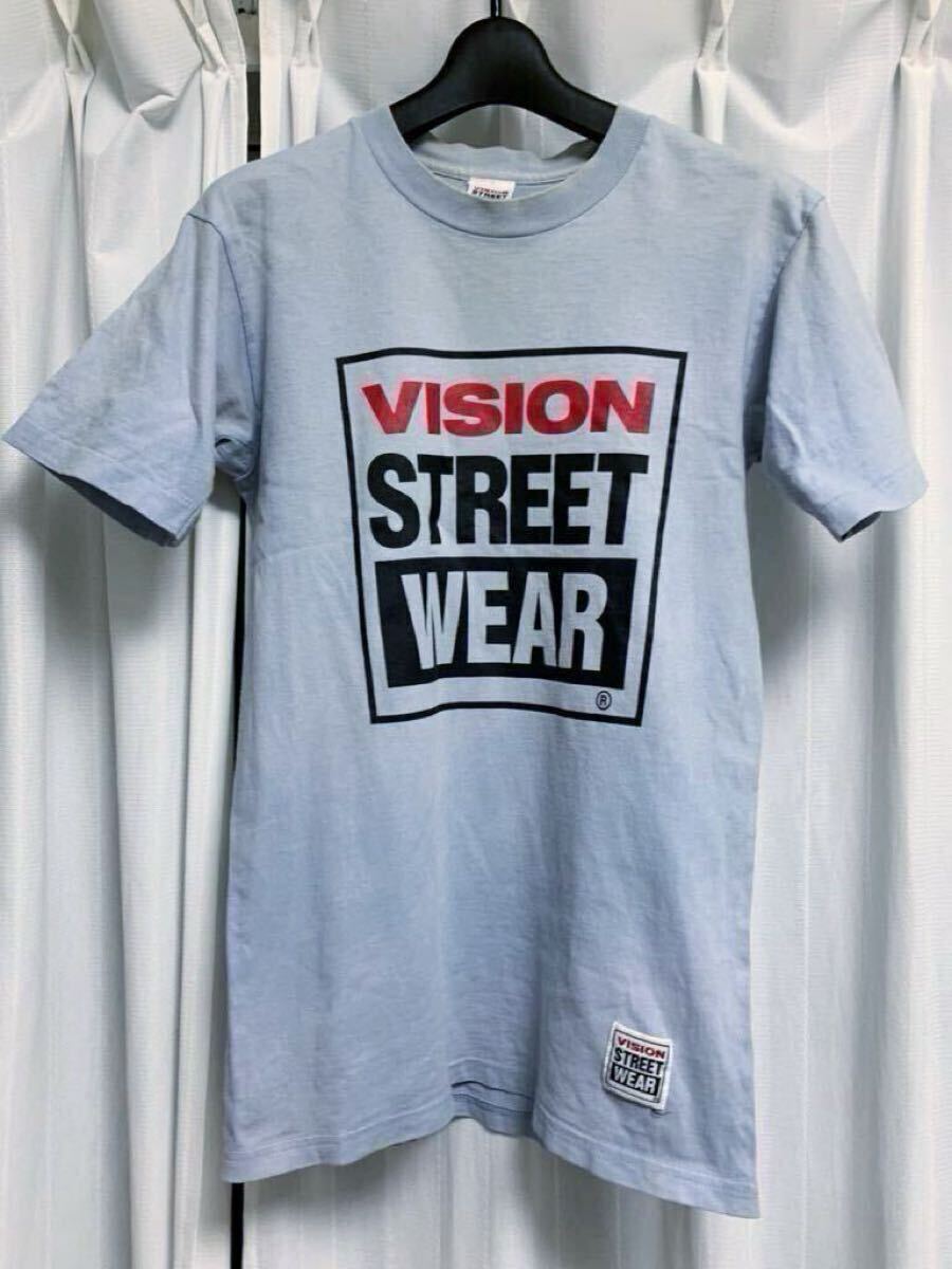 > ◎送料無料【 VISION STREET WEAR 】半袖Tシャツ アメリカ製 Sサイズ 水色 ★ MADE IN U.S.A ヴィジョン ヴィンテージ 古着 色褪せ有