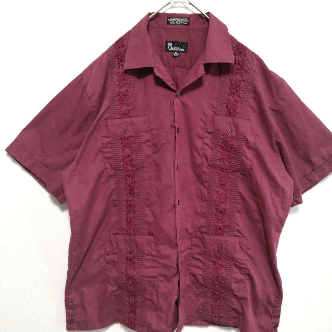 - オメガ キューバシャツ 刺繍 開襟シャツ オープンカラー 4ポケット XL