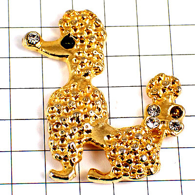- ピンバッジ・プードル犬ゴールド金色ラインストーン付き◆フランス限定ピンズ◆レアなヴィンテージものピンバッチ