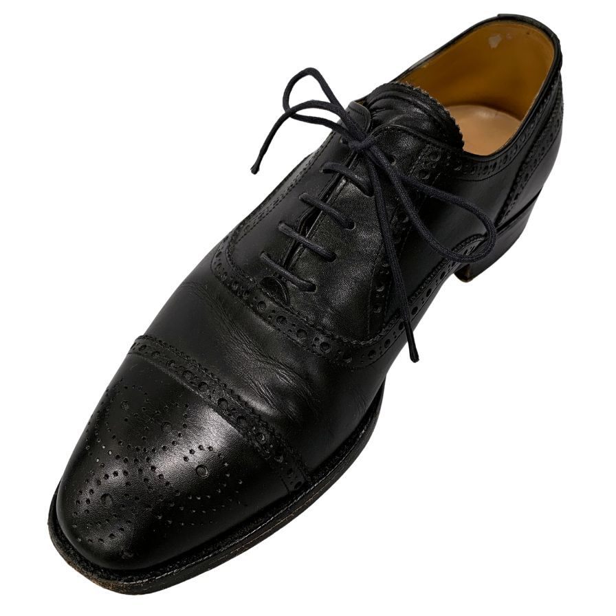 > 三陽山長 レザシューズ パンチド メダリオン ブラック メンズ サイズ表記なし 6.5想定 右足のみ 約25.0cm【AFC44】