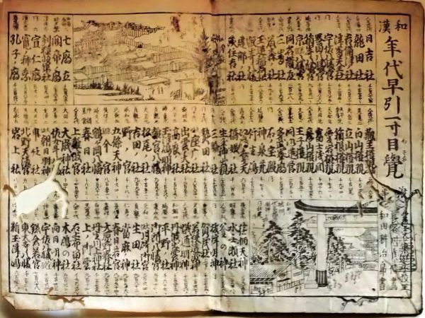 - f25063001〇和漢年代早引一寸目覚 日吉社 図絵入 浪華 江戸時代末期〇和本古書古文書