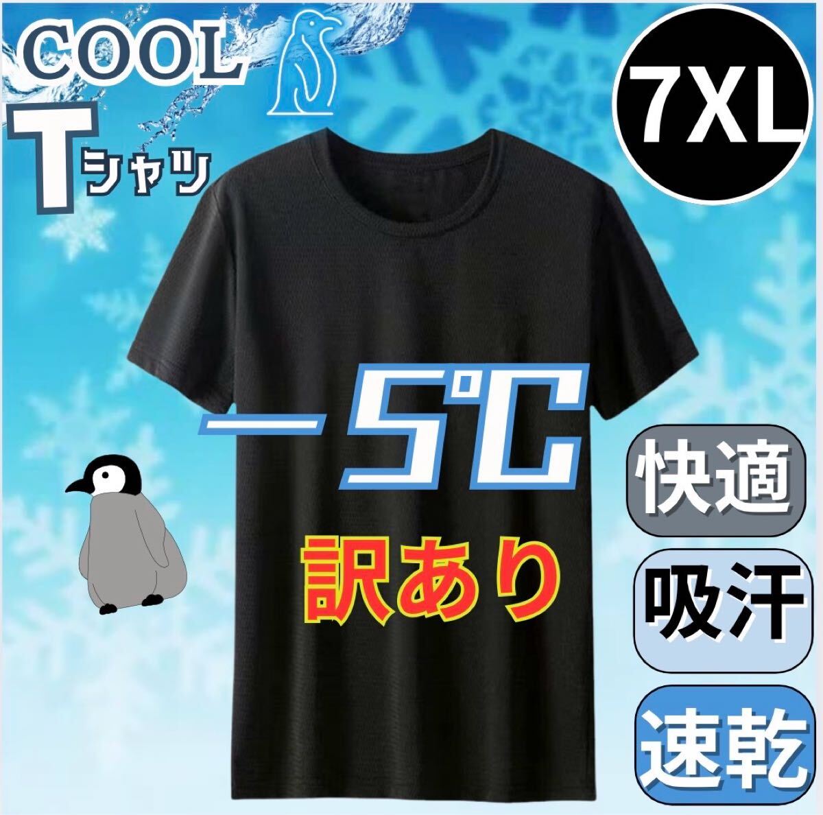 - Tシャツ 7XL黒 接触冷感 ブラック カットソー トップス 半袖 ドライ 熱中症対策 無地 丸首 大きめサイズ メンズ スポーツインナー