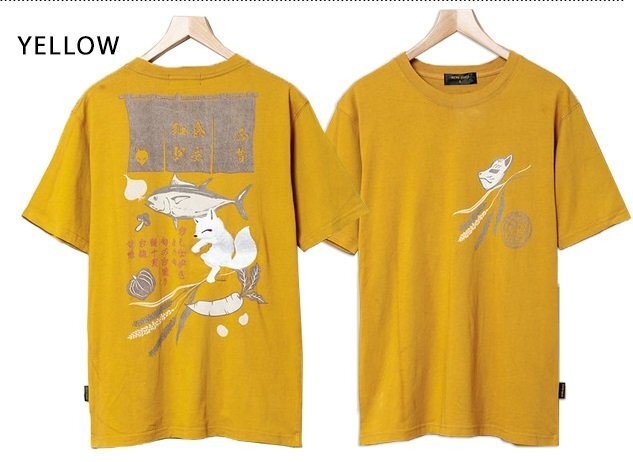 > 和食割烹今昔半袖Tシャツ◆今昔 イエロー XXLサイズ KJ-29249 和柄 和風 狐 キツネ きつね こんじゃく