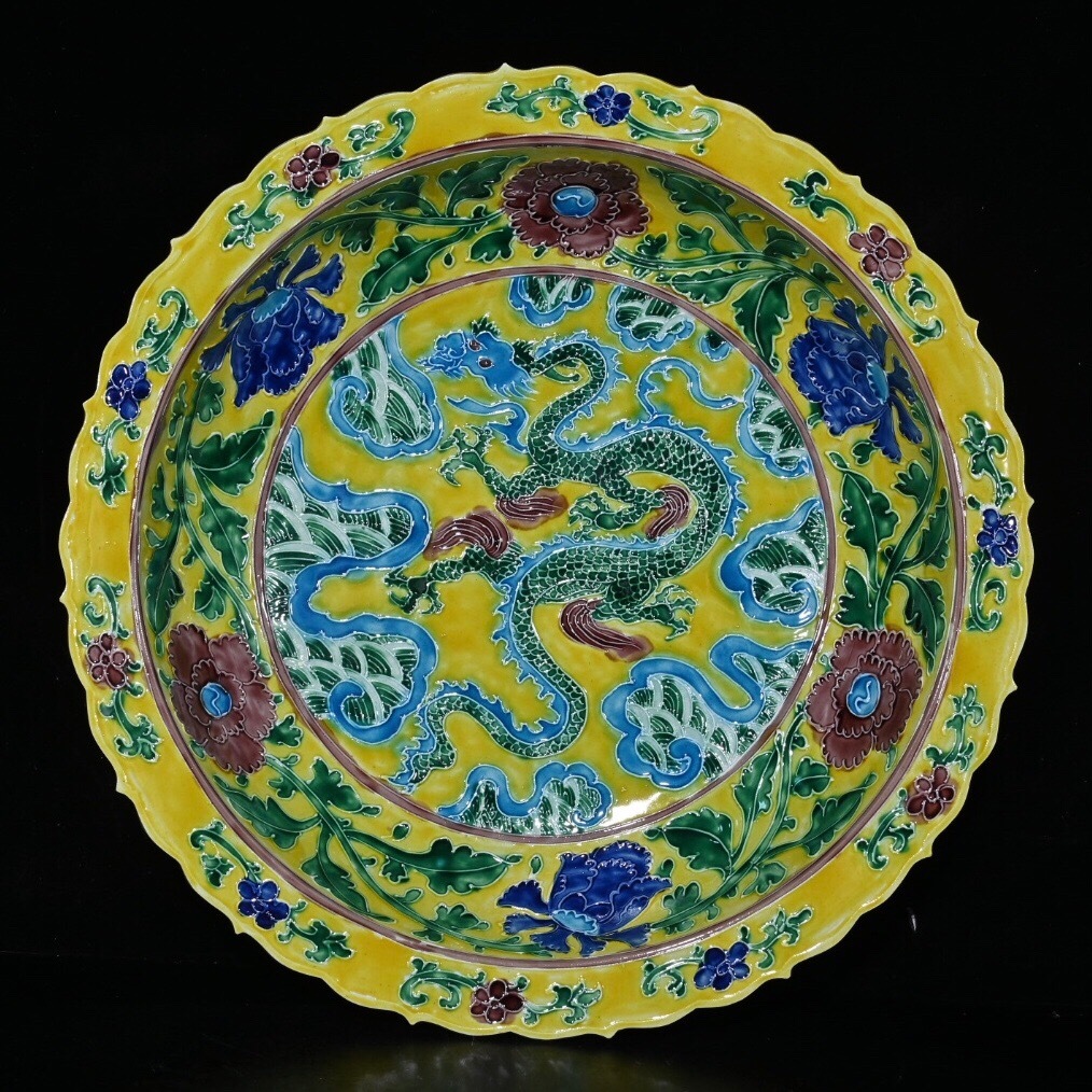 - 蔵友旧蔵出 明 永樂年製款 琺華彩 神龍紋 供盤 稀少珍品 貴重品 古陶瓷品 置物 古賞物 中国古玩 中国古美術品