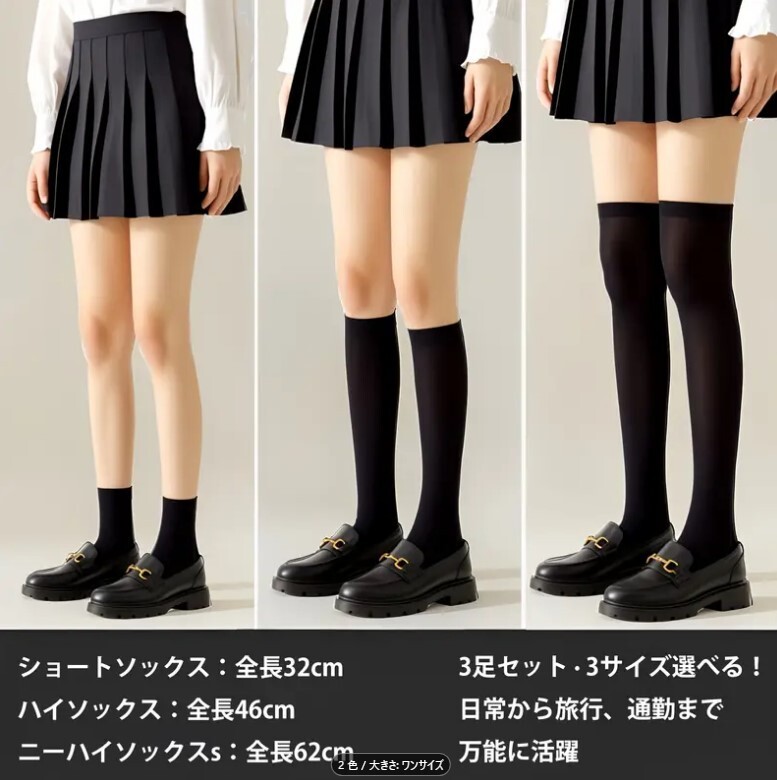 - 【3ペアセット】オーバーザニー 圧縮ソックス 高弾性 優れた通気性 滑り止め ソフト素材 脚長効果 JKスタイル オールシーズン対応