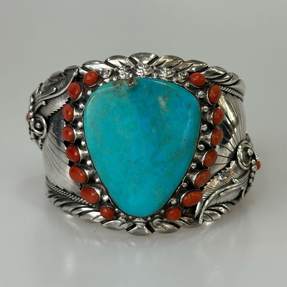> 激レア!!インディアン ジュエリー 特大 ターコイズ コーラル sterling925 バングル ブレスレット ネイティブ アメリカン vintage