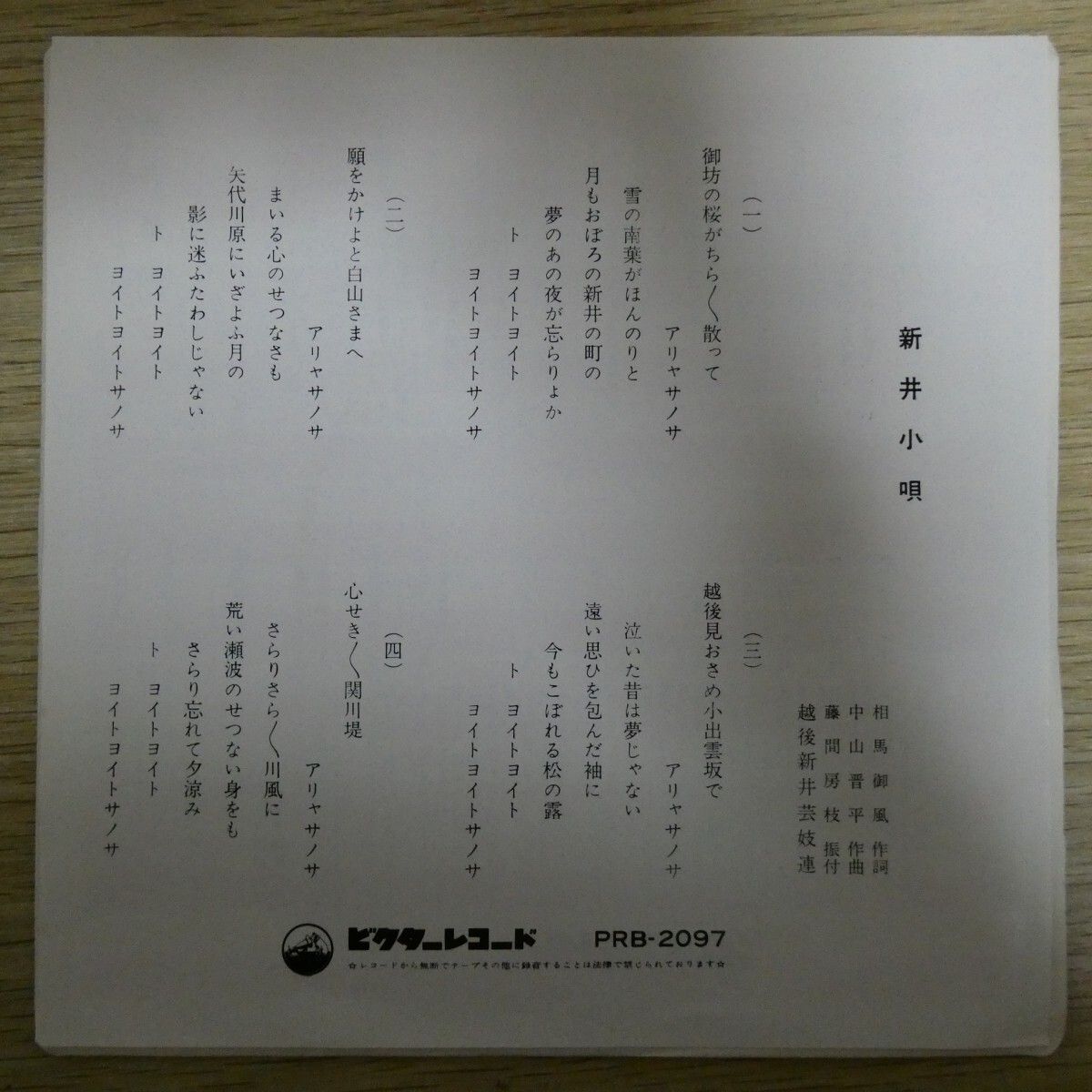 - EP1478「越後新井芸妓連 / 新井小唄 / PRB-2097」