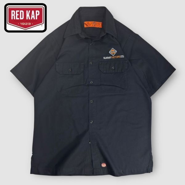 > ★SUMMIT MOTORSロゴ刺繍★RED KAP 半袖ワークシャツ sizeM ピスネーム スリット 古着 クリーニング プレス済み 2291