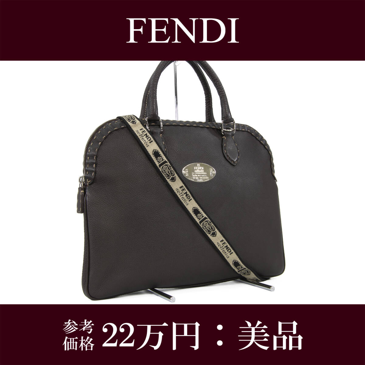 - 本物 送料無料 フェンディ 2WAYショルダーバッグ ハンドバッグ メンズ レディース セレリア 茶色 ブラウン 斜め掛け A4対応 革 レザー I242
