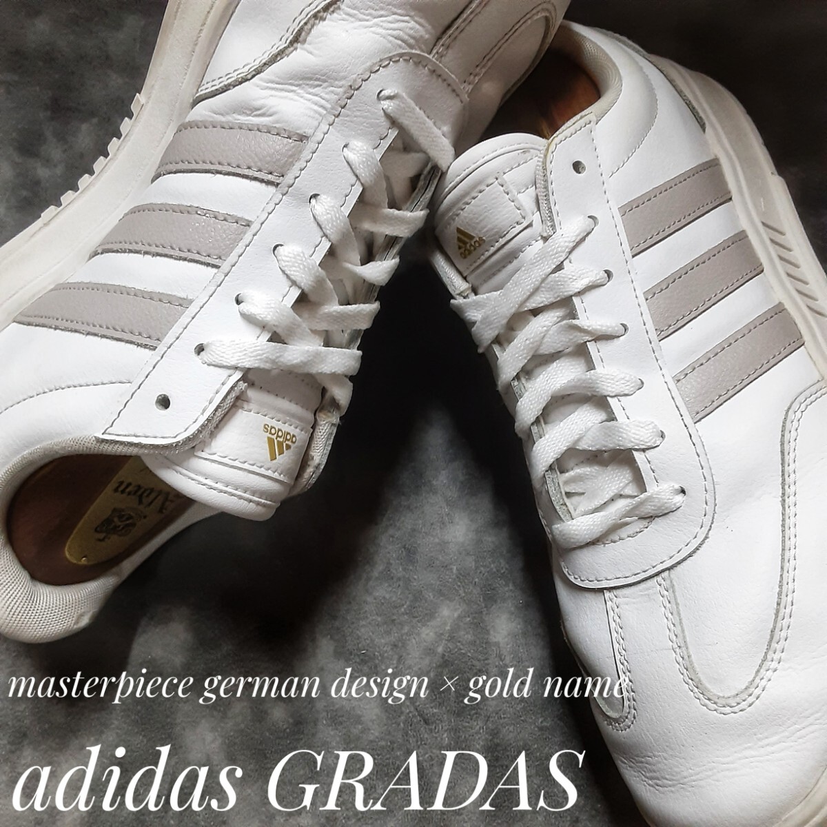- 最値!23年製!名作ジャーマンデザイン×ゴールドネーム!アディダス グラダス高級シンセレザー スニーカー!ホワイト×グレー!白灰色 27cm