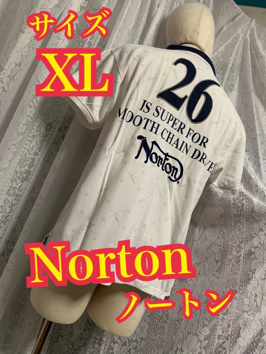 - Norton ノートン 半袖 ポロシャツ 刺繍デカロゴ バイカー 白 XL