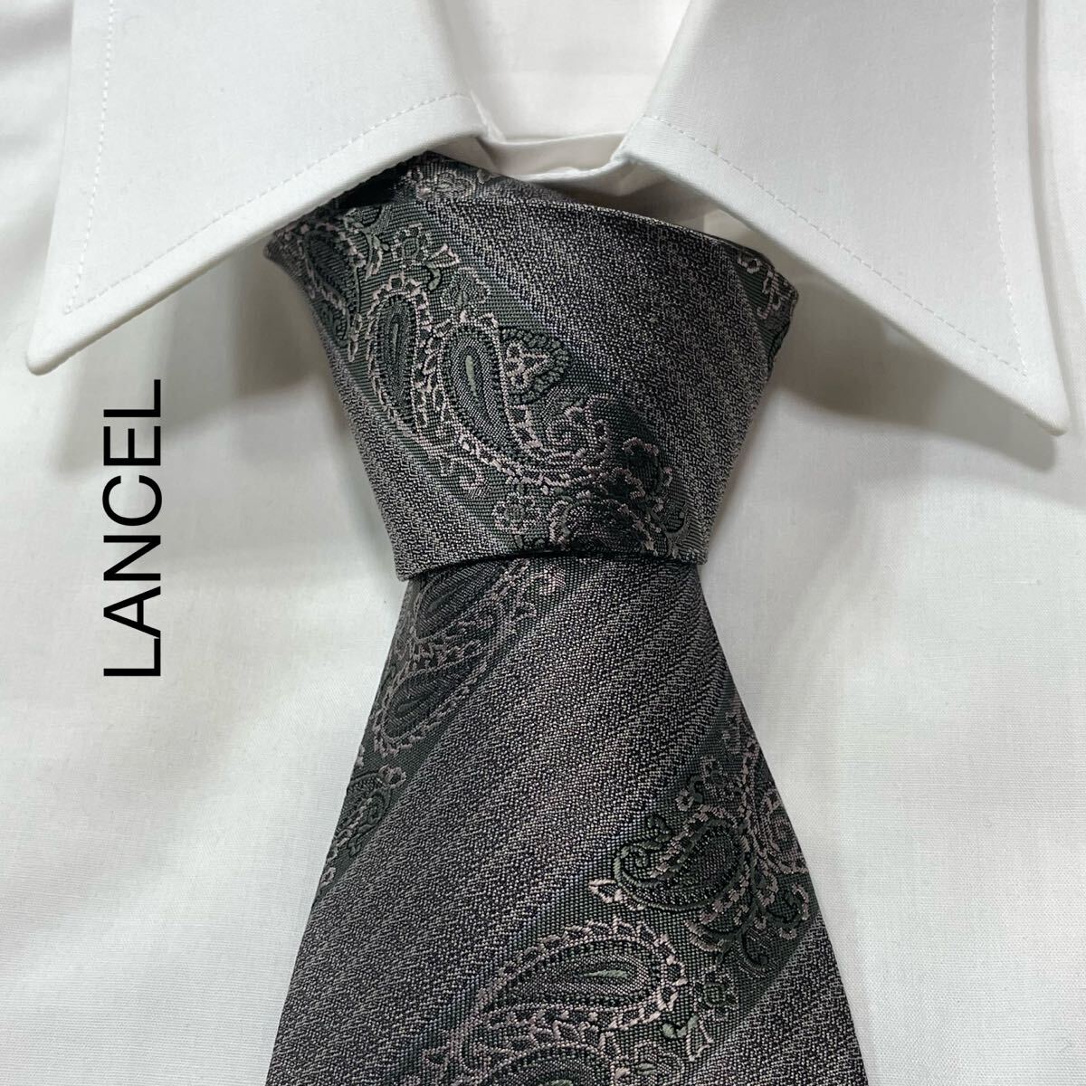 - LANCEL ランセル ペイズリー ストライプ ジャガード シルク ネクタイ グレー グリーン TG2555