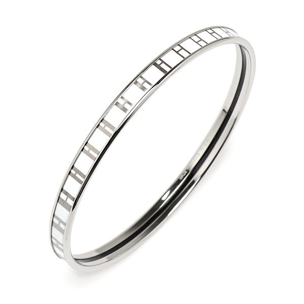 - 美品 エルメス エマイユ/OP'H ホワイト×シルバー ブレスレット バングル HERMES
