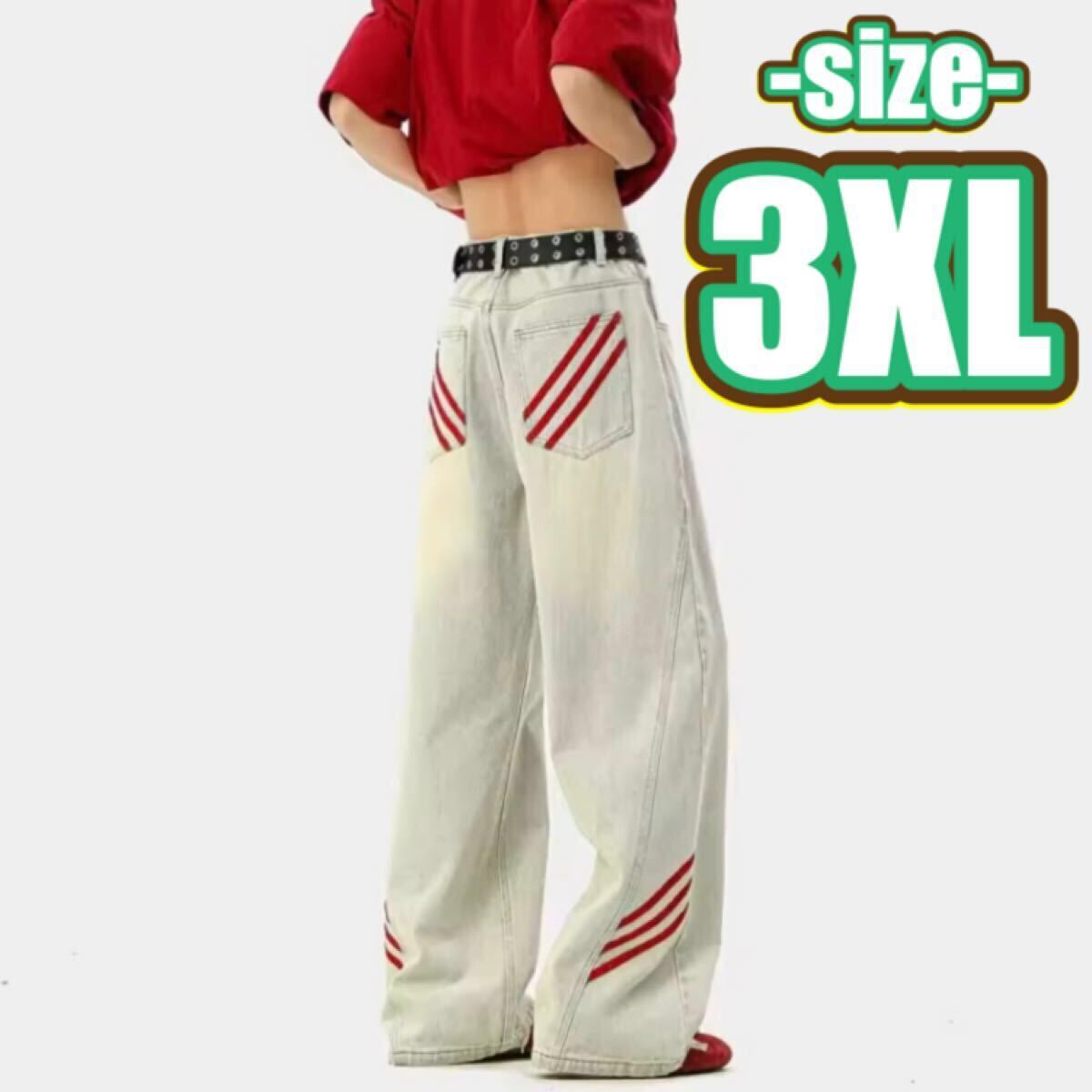 - ワイドデニムパンツ ジーンズ ライトブルー メンズ ストライプ ストリート オルチャン B系ファッション