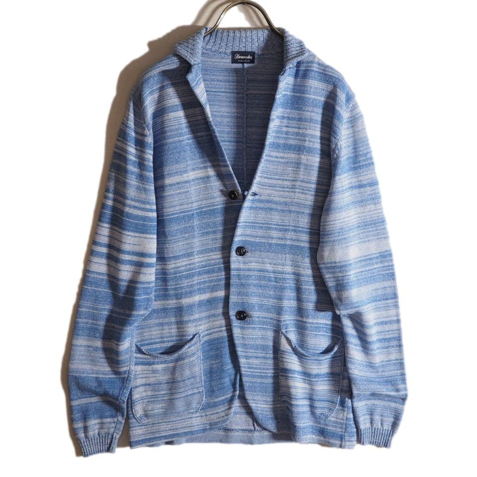 > P4615z6 ■Drumohr ドルモア■ イタリア製 コットンニット カーディガン ボーダー ブルー 44 / メンズ サマーニット 春夏
