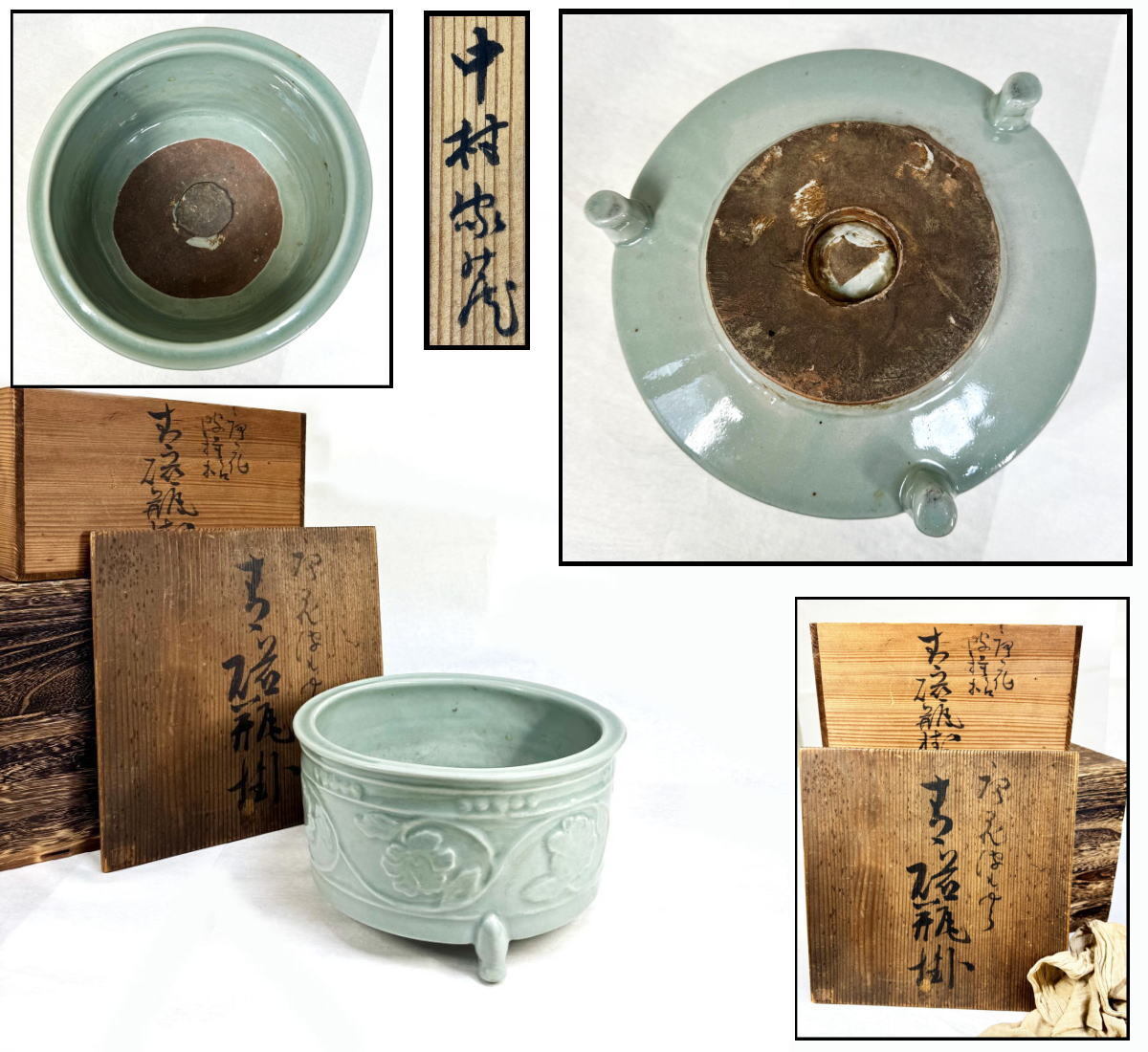 - 【送料無料】南宋~元時代 13-14世紀 龍泉窯青磁 浮牡丹文香炉 中国古玩 唐物 歴史有る年代物 入手困難 骨董 古美術 (旧家蔵出し) WWTT002
